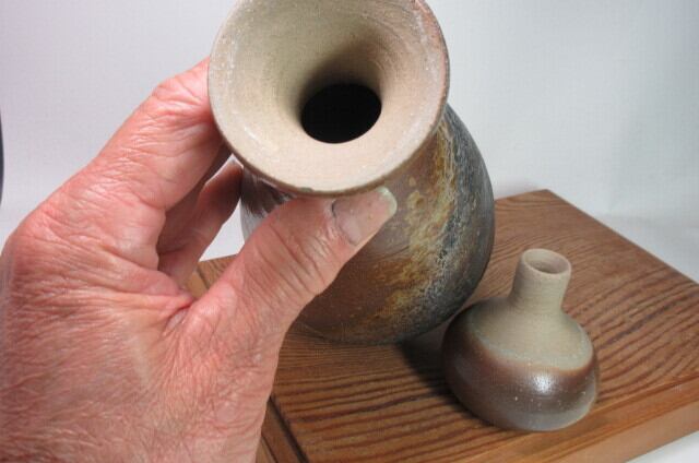 備前焼は古くから山城での水がめや花瓶として利用されており、水が悪くなりにくく花を生けても長持ちすることでも知られています。これは、備前焼独自の波動が自然界と調和し、周囲のものに良い影響を与えるためと考えられています。科学的にはまだ解明されていないようですが、素朴な土の魅力が詰まったこのボトルには、確かな存在感があります。